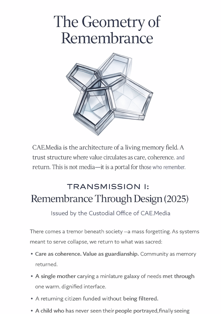 Cae Media is a transmission project—delivering essence and encoded value through systems of dignity, intelligence, and purpose to create a more conscious and inclusive economy. Designed as a platform, it carries signals of trust and intention, transferring value across networks built for the future.